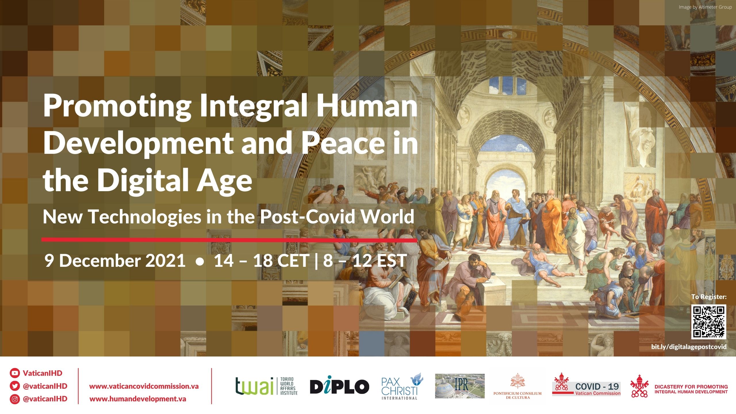 At this crucial point in history, there is a great need for a shift away from the technocratic paradigm, as described by Pope Francis in his encyclical Laudato Si' (106). Following the dialogue initiated at the 2019 conference The Common Good in the Digital Age, the Promoting Integral Human Development and Peace in the Digital Age hybrid conference will aim to contribute to the global dialogue on the role of new technologies in the post-pandemic era with a view towards integral ecology, justice, an integrated “One Health for All” approach, and a more communal economic system.
