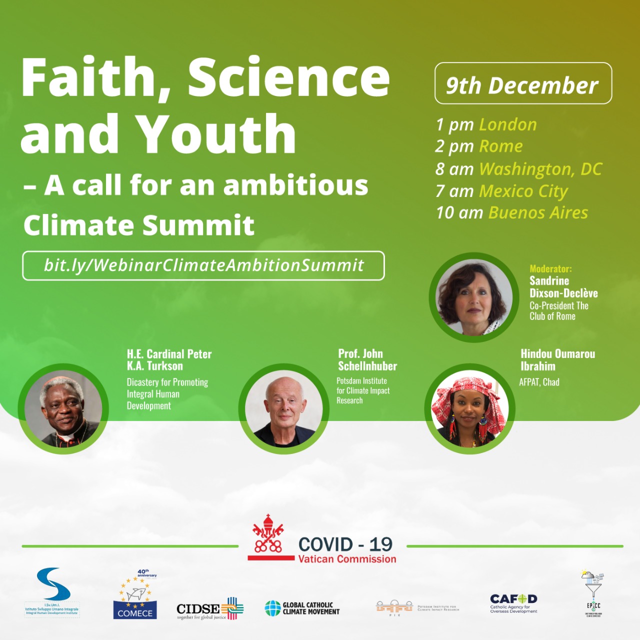 In occasion of the five years anniversary of the landmark Paris Agreement, adopted in Paris in December 2015 and ahead of the Climate Ambition Summit (12 December), the Vatican Covid-19 Commission (#VaticanCovidCommission) and its partners will highlight through this webinar the need to urge governments to raise ambition for tackling the climate emergency, through the points of view of: