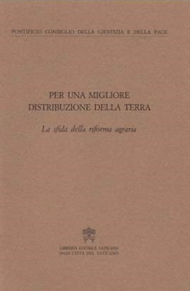 The Pontifical Council for Justice and Peace (which merged into the Dicastery for Promoting Integral Human Development since August 2016) has sought to address, through this document, the dramatic problem of the misappropriation and concentration of land, urging its solution and indicating the spirit and objectives that should guide it. For a better distribution of Land. The challenge of agrarian reform draws the attention of those who care about the problems of the world of agriculture and general economic development, especially those responsible at various national and international levels, to the problems of land ownership and encourage them to take necessary and increasingly urgent action. It is not, however, a document of political proposal, because it is not of the Church.