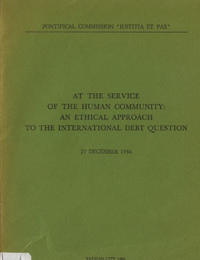 The phenomenon of international indebtedness has been aggravated with particular acuity, placing the international community, both for its proportions and for the stakes at stake, in front of new challenges. For this reason, in 1986 the Holy Father John Paul II, asked the then Pontifical Commission "Iustitia et Pax" to deepen its reflection and to propose to the various stakeholders - creditor and debtor countries, financial institutions and commercial banks - criteria for discernment and a method of analysis "for an ethical approach to the international debt". This document is intended to help clarify the choices of those who exercise responsibility in this privileged place of international solidarity.