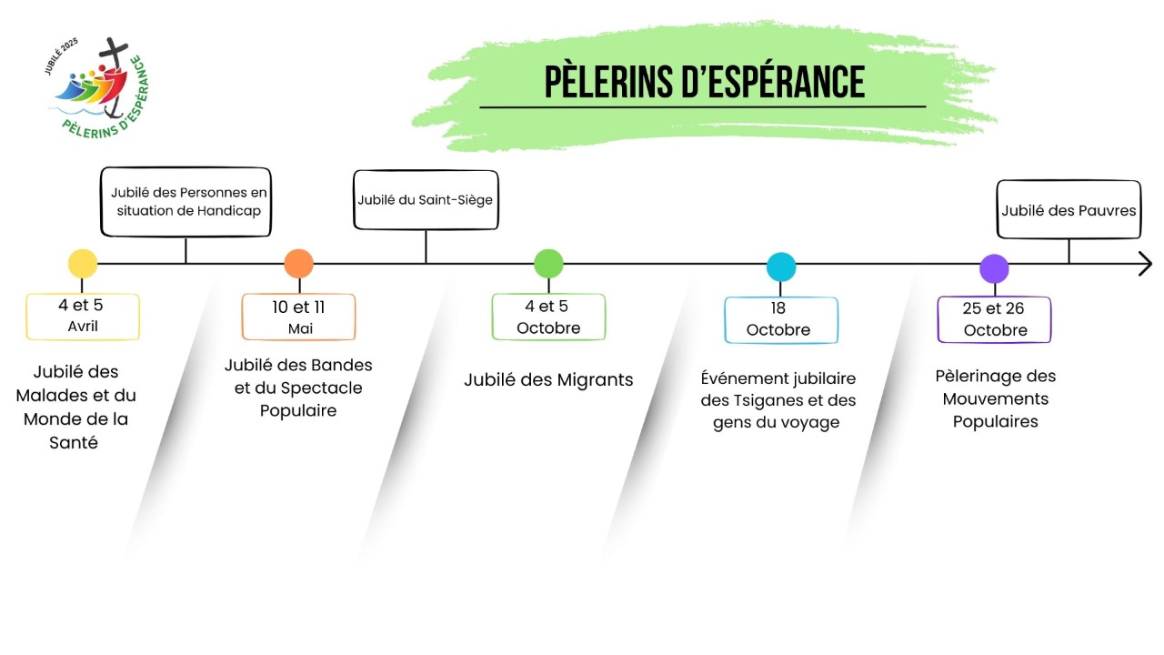 À l’occasion du Jubilé 2025, ayant pour thème « Pèlerins d’Espérance », le Dicastère pour le Service du Développement Humain Intégral collabore à l’organisation et à la promotion de divers Jubilés et événements jubilaires, puisqu’il s’agit de thèmes liés à la mission de ce Dicastère.