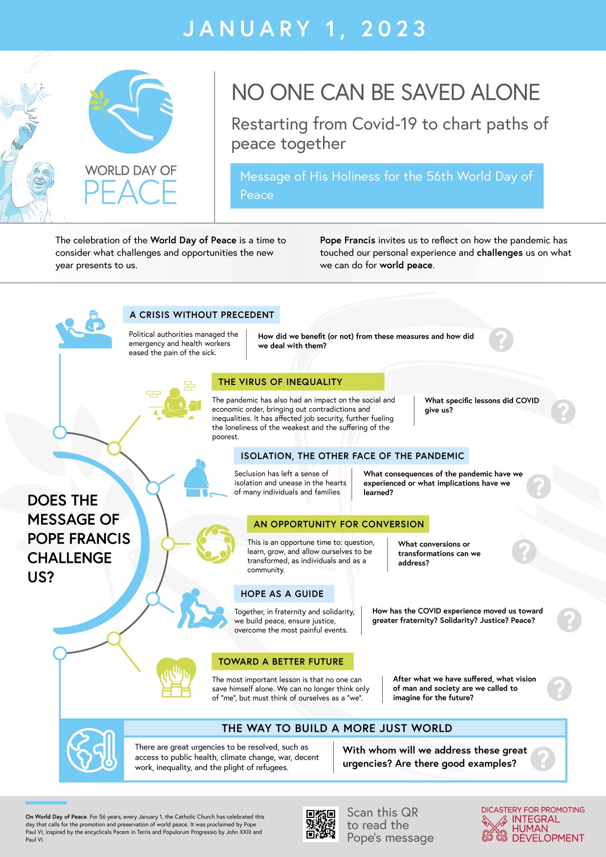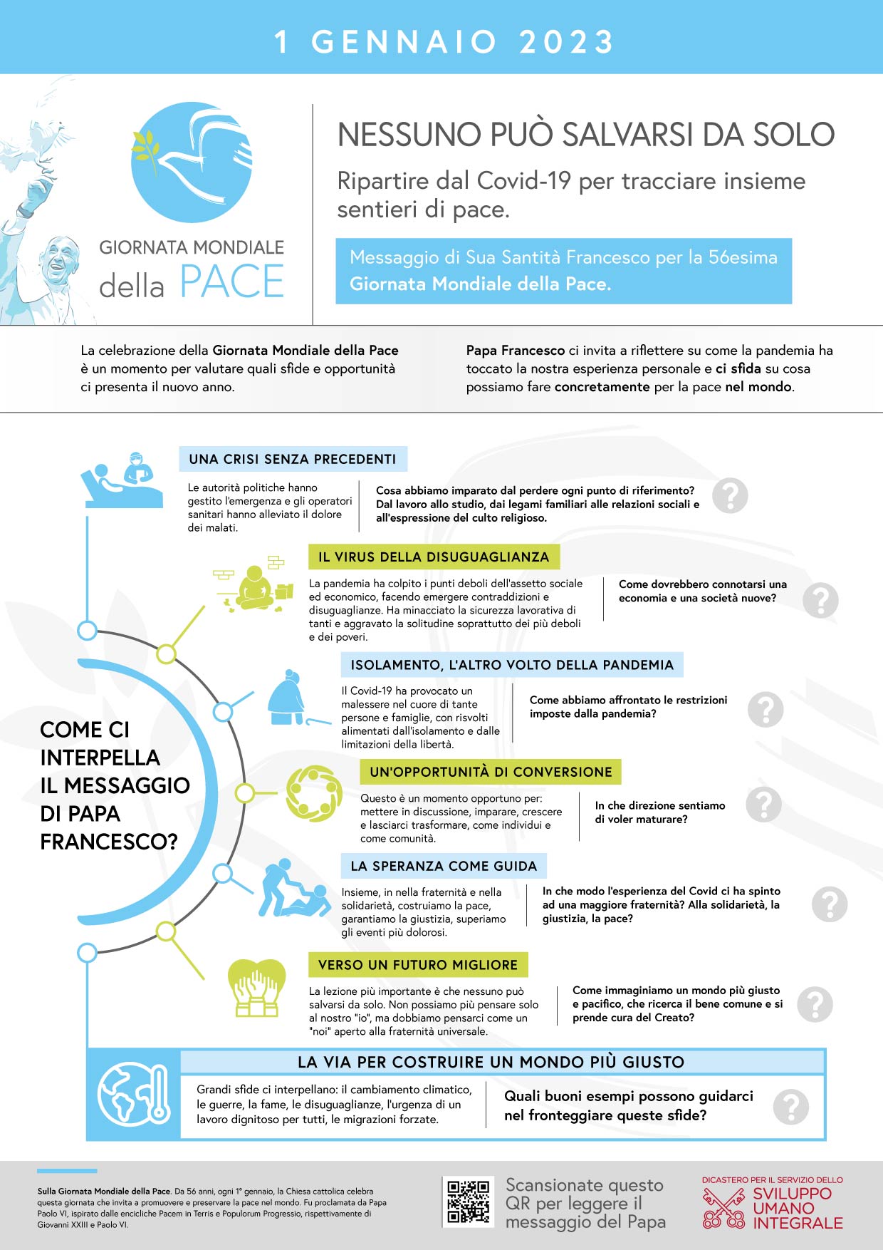« Personne ne peut se sauver tout seul. Repartir après la Covid-19 pour tracer ensemble des sentiers de paix » est le thème du message du Saint-Père pour la 56e Journée Mondiale de la Paix, présenté aujourd'hui à la Salle de Presse du Saint-Siège. Parmi les orateurs figurent le Card. M. Czerny, préfet du Dicastère pour le Service du Développement Humain Intégral ; Sœur Alessandra Smerilli, Secrétaire du Dicastère ; Dr. Maximo Torero, Economiste en chef de la FAO ; et l'artiste M. Simone Cristicchi.