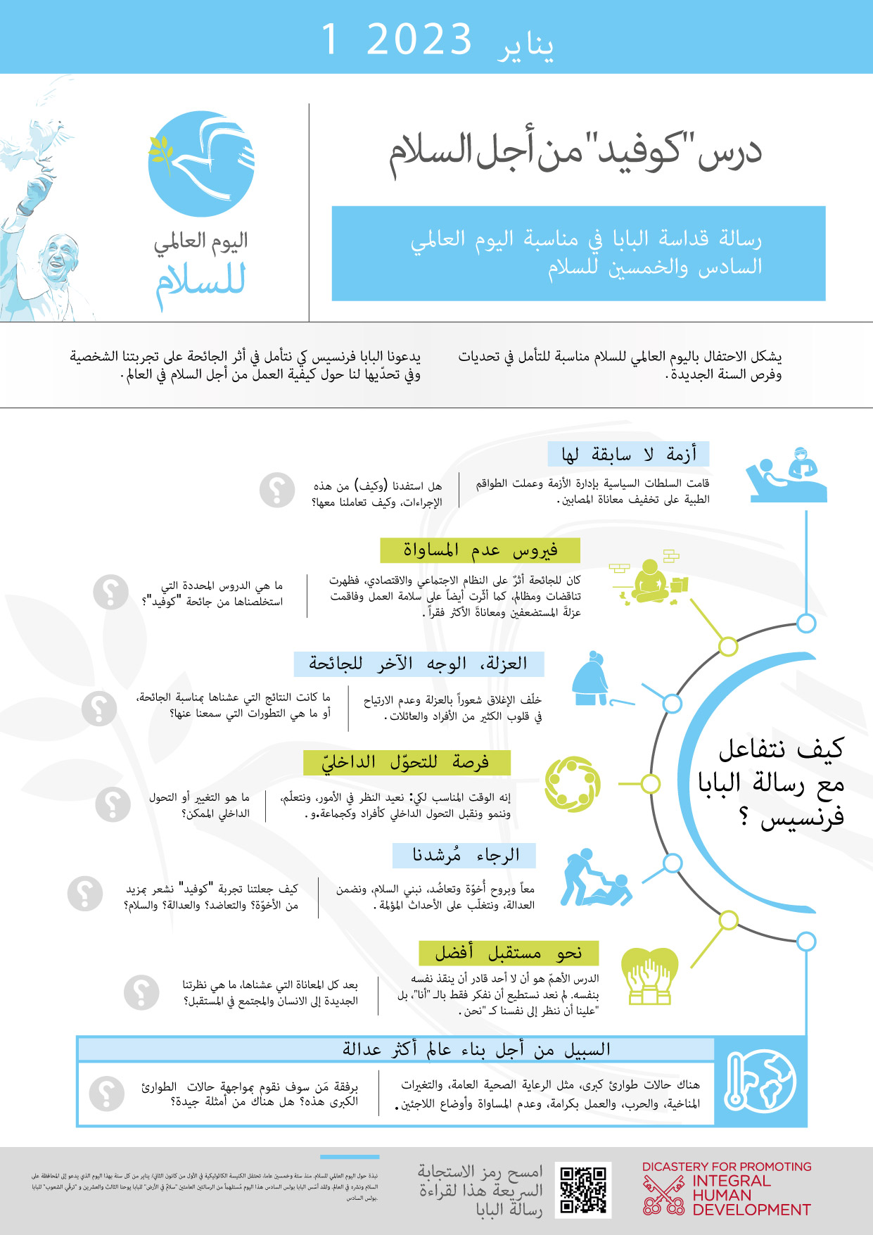Les individus et la société progressent rarement dans des situations générant un tel sentiment de défaite et d'amertume : ce dernier affaiblit les efforts dépensés pour la paix et provoque des conflits sociaux, des frustrations et des violences de toutes sortes. En ce sens, la pandémie semble avoir bouleversé même les parties les plus paisibles de notre monde, faisant ressortir d'innombrables fragilités.