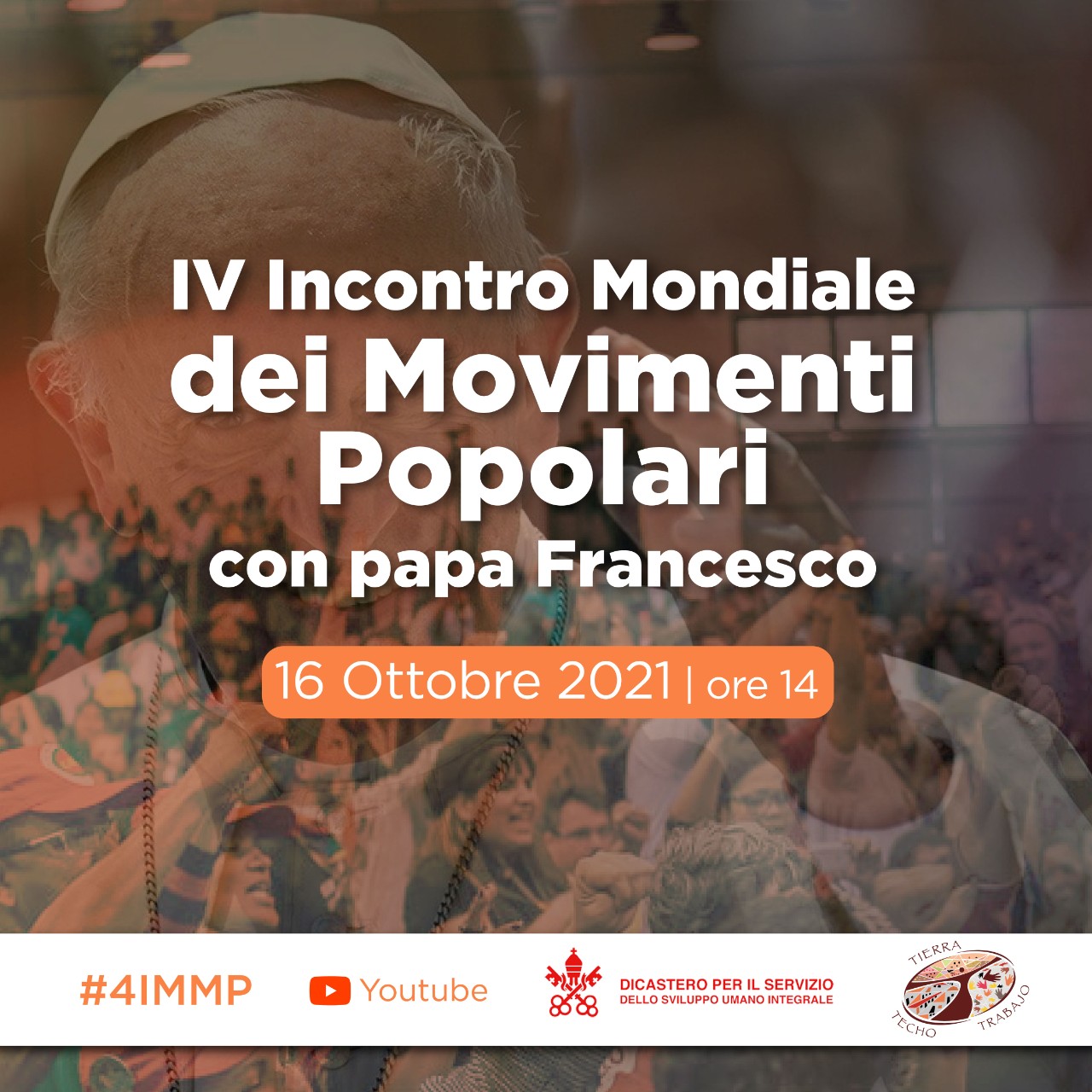 La seconda sessione del IV Incontro Mondiale dei Movimenti Popolari (IV EMMP) avrà luogo sabato 16 ottobre alle ore 14 (CEST) e prevede un intervento di Papa Francesco, che affiderà un messaggio ai partecipanti. La trasmissione dell’incontro potrà essere seguita attraverso le reti e i canali sociali dei Movimenti Popolari e i canali YouTube di Vatican News e del Dicastero per il Servizio dello Sviluppo Umano Integrale.